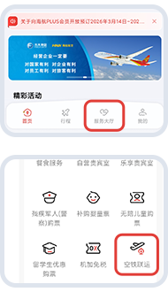 下载海南航空APP,或进入微信小程序,进入“空铁联运”专区,开启你的高效联程之旅。