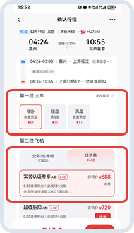 支持身份证、护照等多种证件,支付一次即可完成两段行程预订。