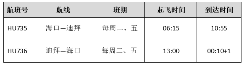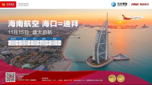 11月15日起,海南航空计划开通海口—迪拜国际航线