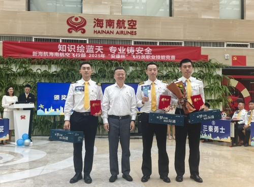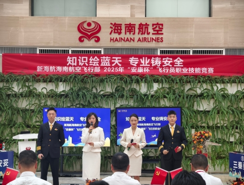 近日,由新海航海南航空工会主办,飞行部党委、飞行部团委、飞行部总飞行师办公室共同承办的2025年“安康杯”飞行员职业技能竞赛在海口美兰基地成功举行并圆满落幕。本次竞赛以“知识绘蓝天,专业铸安全”为主题,旨在全面检验和提升飞行员的专业知识、技能水平和团队协作能力。海航航空集团副总裁兼工会主席、海南航空党委书记兼工会主席桂海鸿,海南航空总裁、党委副书记余超杰,以及飞行部、安全监察部、党群工作部部门领导、各中心管理干部、一线飞行员出席参加了本次活动。