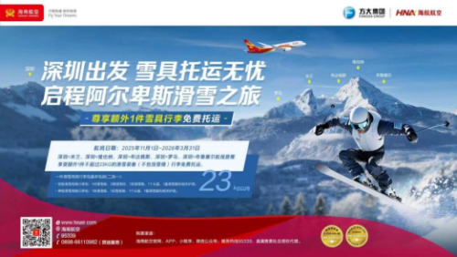 2025年11月11日,深圳——本报讯(通讯员 唐啸啸 作者单位:海南航空控股股份有限公司)自2025年10月26日起,新海航航空集团旗下海南航空正式执行冬春航季航班计划。新航季中,海南航空在深圳新增3条国内航线,加密部分热门航线航班频次,并增加宽体机投放。同时,针对5条深圳往返欧洲的滑雪航线推出滑雪装备额外免费行李额度,进一步丰富旅客出行选择,提升乘机体验。