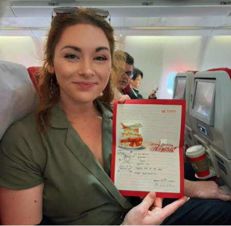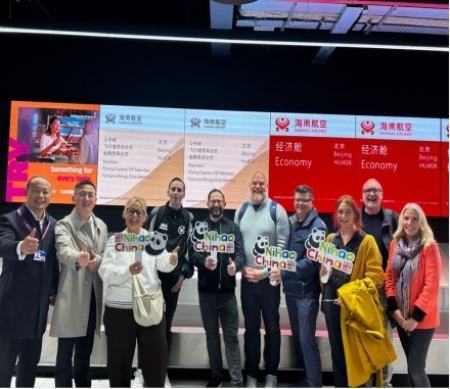 此次踩线活动获得中国驻伦敦旅游局的高度重视,旅游局代表全程随团,协助踩线团在华期间的交流与访问。为保障考察顺利开展,海南航空提前制定专项保障方案,高效协助团队完成值机与通关流程,并特别安排机上集中就坐,营造舒适温馨的旅行体验。旅途中,恰逢一位团员生日,海南航空机组在机上为其送上特别的生日祝福,现场氛围温馨热烈,为全团带来难忘而温暖的旅程记忆。