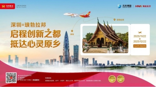2025年11月25日,深圳—本报讯:(通讯员 谭燕琼、张瀚兮 作者单位:海南航空控股股份有限公司)11月22日北京时间07:55,新海航旗下海南航空HU475航班从深圳宝安国际机场顺利起飞,标志着深圳—琅勃拉邦国际航线正式启航。该航线是海南航空在深圳出港的第十二条国际航线。此航线的开通,标志着粤港澳大湾区与老挝北部文化经济枢纽的空中通道全面贯通,不仅为两地旅客提供了“说走就走”的出行选择,更成为中老共建“一带一路”、深化澜湄合作的又一务实成果,将为中老之间的旅客出行和经贸往来提供更为便捷的选择。