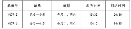 附表:长春—香港航线航班信息