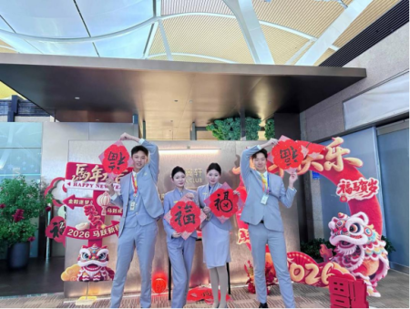 地面服务方面,海南航空值机柜台与贵宾室均布置节日装饰,营造浓厚新春氛围。公司还为从北京、海口出港的旅客准备了马年春节纪念登机牌,增添旅途仪式感。各地自营贵宾室同步开展迎新春主题活动,并推出“12Hai味·迎新春”系列特色美食与互动体验,邀请旅客挥毫写福、纳福迎新,以团圆滋味温暖候机时光。